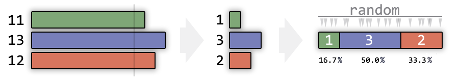 Например, у нас есть три особи с приспособленностью равной 11, 13, 12.